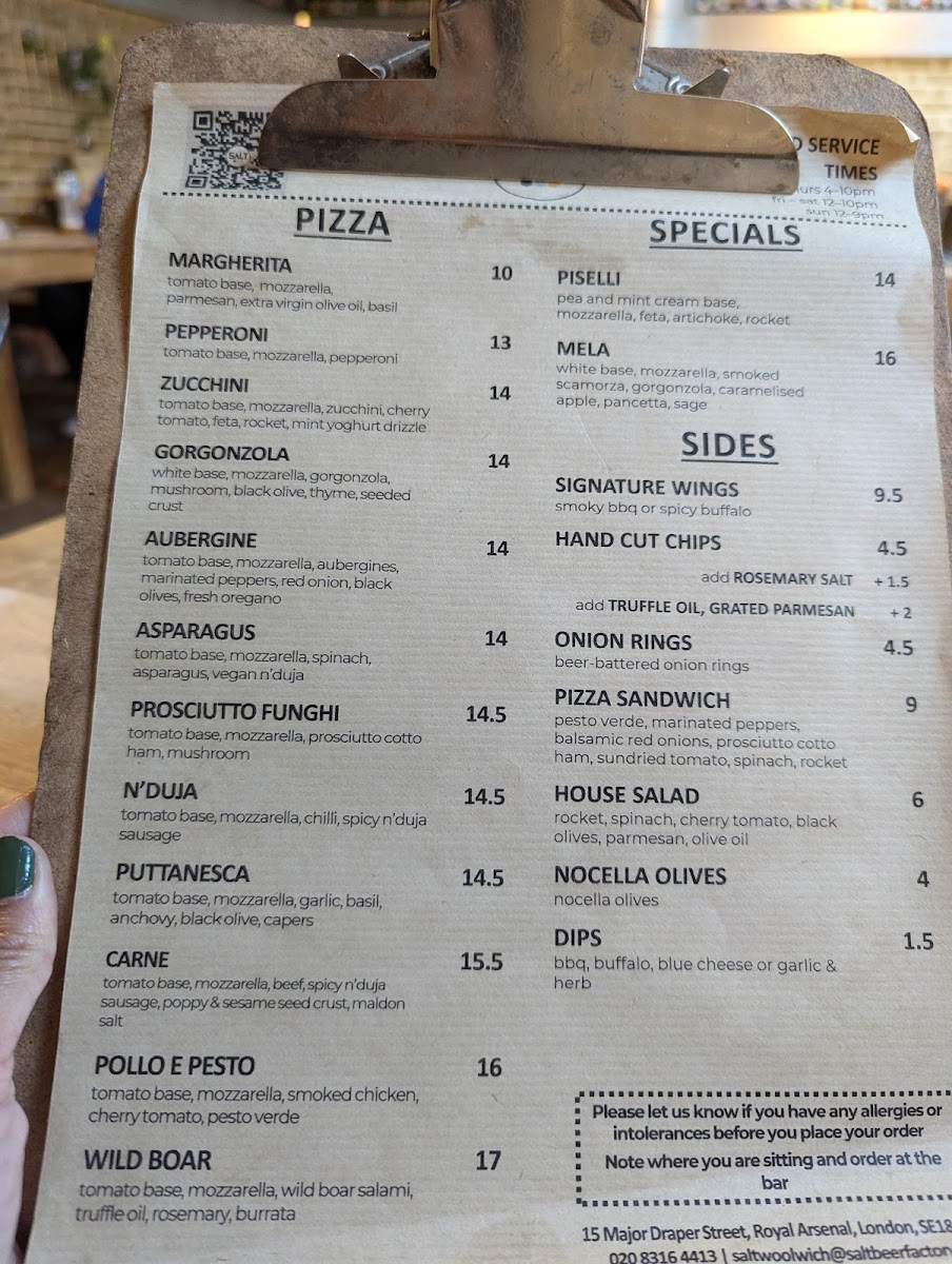 Welcome to SALT Woolwich, a vibrant eatery nestled in the heart of Royal Arsenal, London. This cozy destination boasts a delightful menu, primarily known for its outstanding pizzas. The sourdough crust is a standout, offering a perfect balance of crispy and chewy textures. Guests rave about the generous toppings and the well-crafted flavors that make each pizza a crowd favorite.